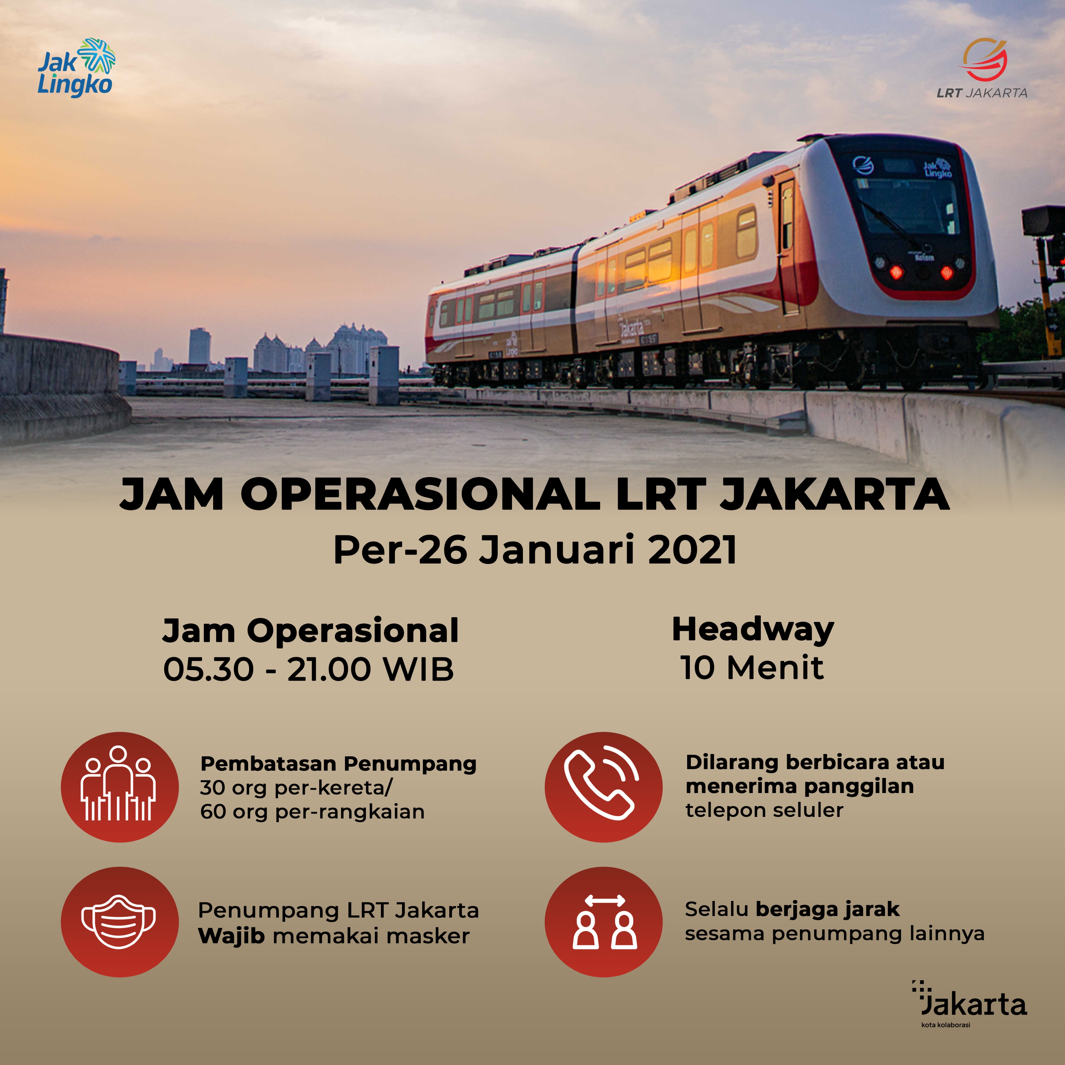 Lrt Jakarta On Twitter Sahabat Lrtj Informasi Jadwal Operasional Lrtj Dapat Dilihat Dari Gambar Ini Ya Per 26 Januari 2021 Jam Operasional Lrtj Mulai Pukul 05 30 21 00 Wib Dengan Selang Waktu 10